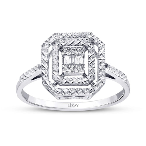 0.09 ct.-Stil Diamant-Effekt Rund Solitär Verlobungsring